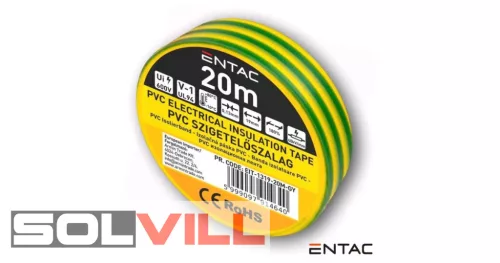 Szigetelőszalag 19mm/20m zöldsárga Entac